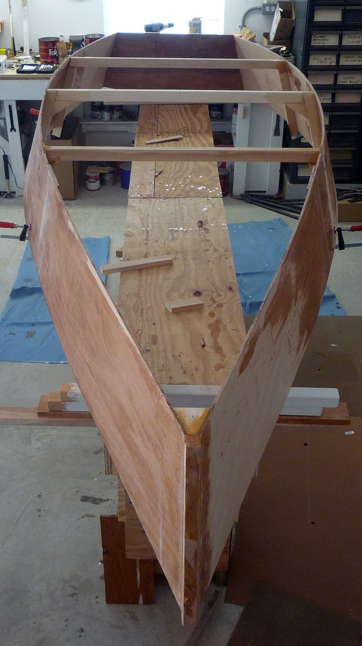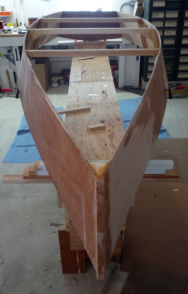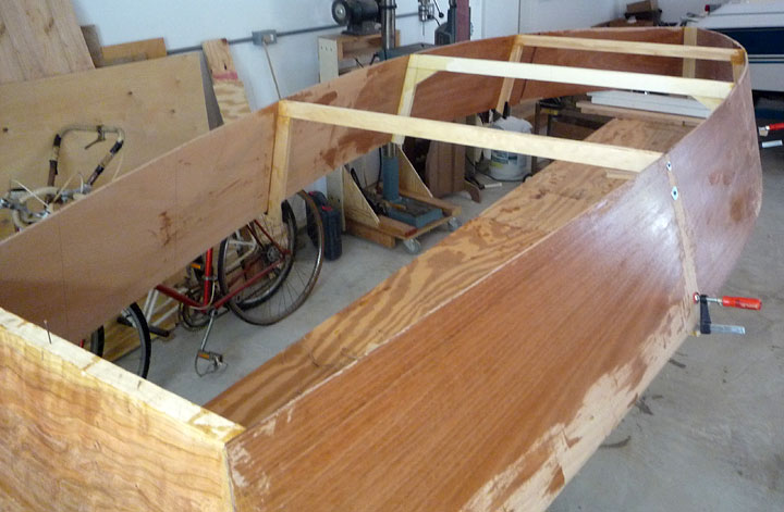 Added two frames today, glued them in place with thickened epoxy. They are held in place until epoxy cures with screws and clamps. Filled a few nail and screw holes with leftover thickened epoxy. Might add filler blocks later, where bottom pieces meet side pieces. Might not.