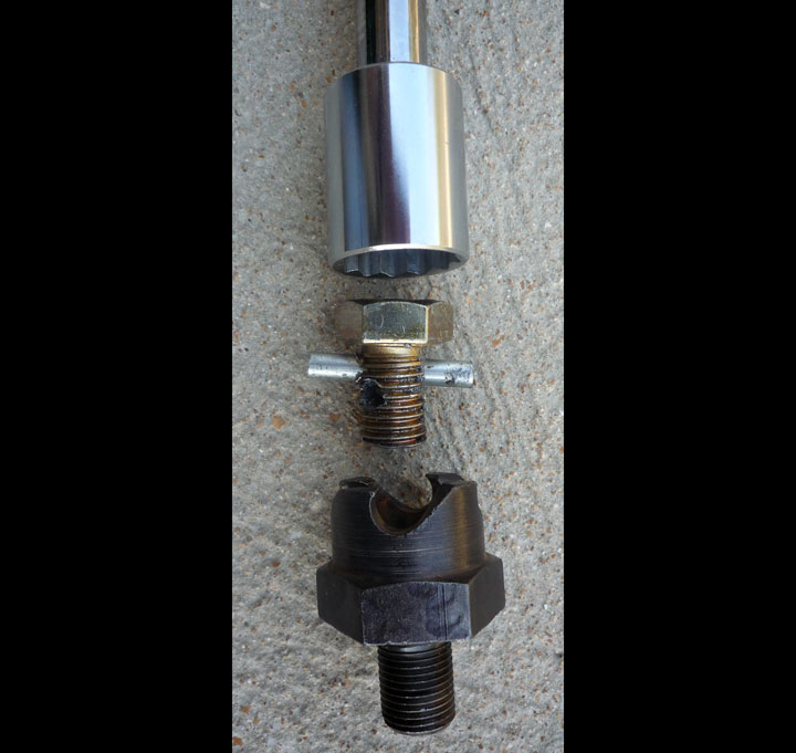 Did very little on boat today. But made this tool (to use with a socket wrench on extension) to turn over the engine in SOUPER, so I can find the timing indent to set the distributor.