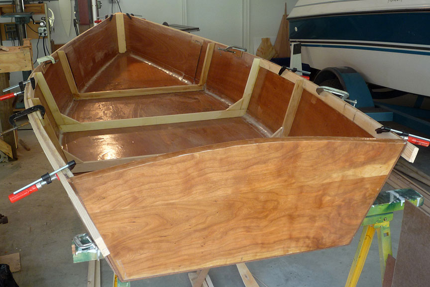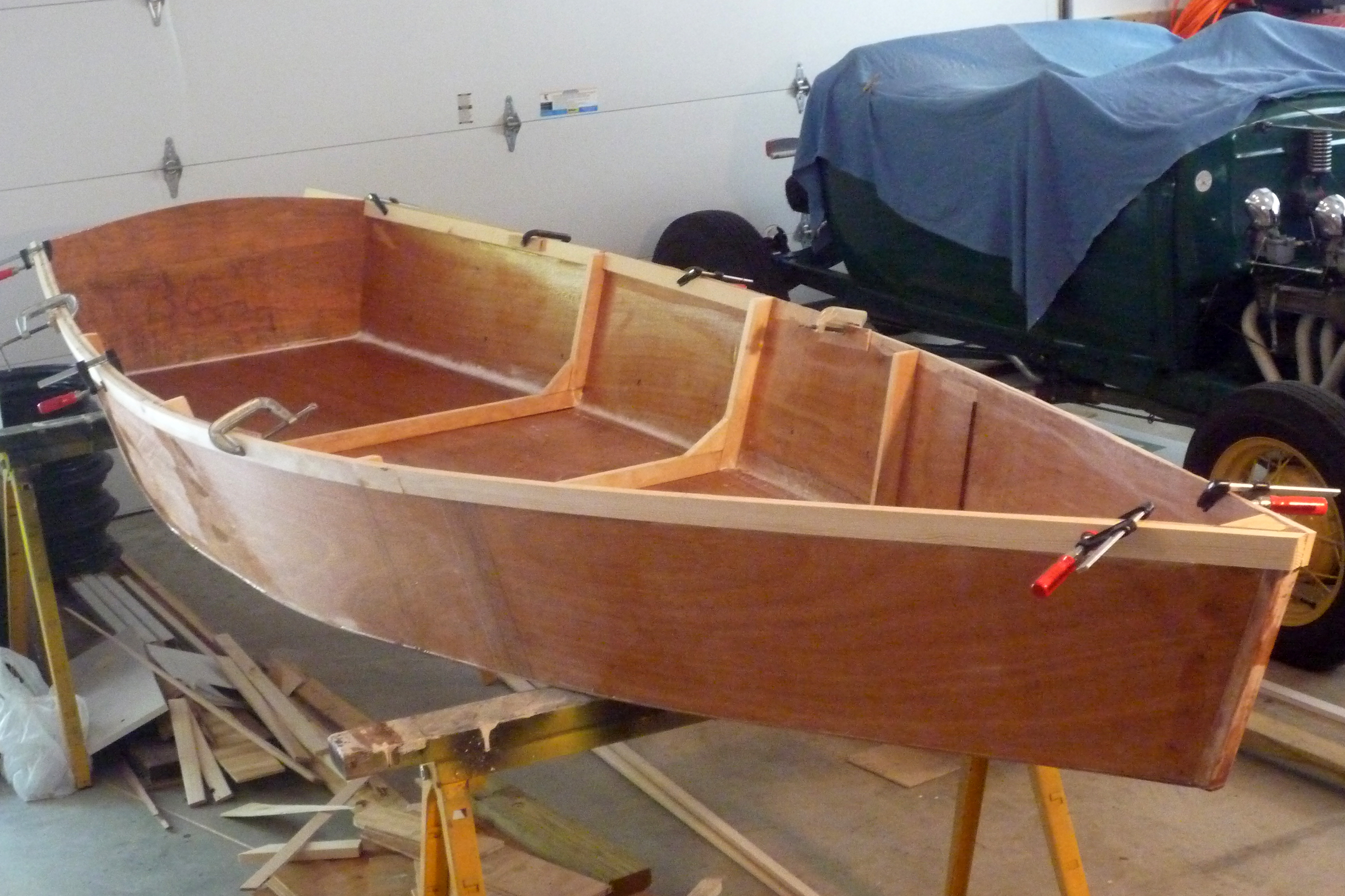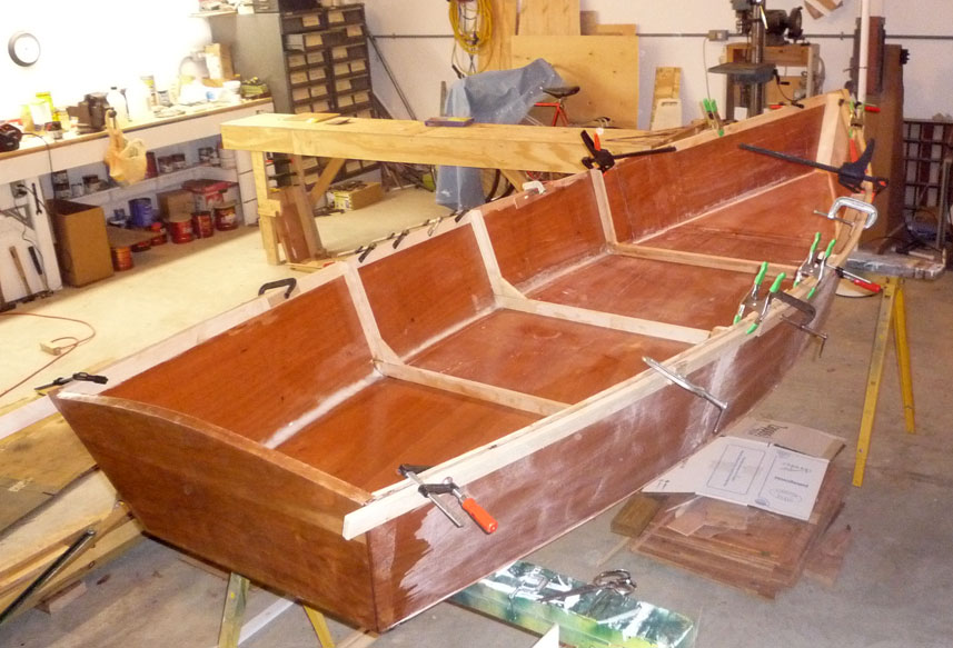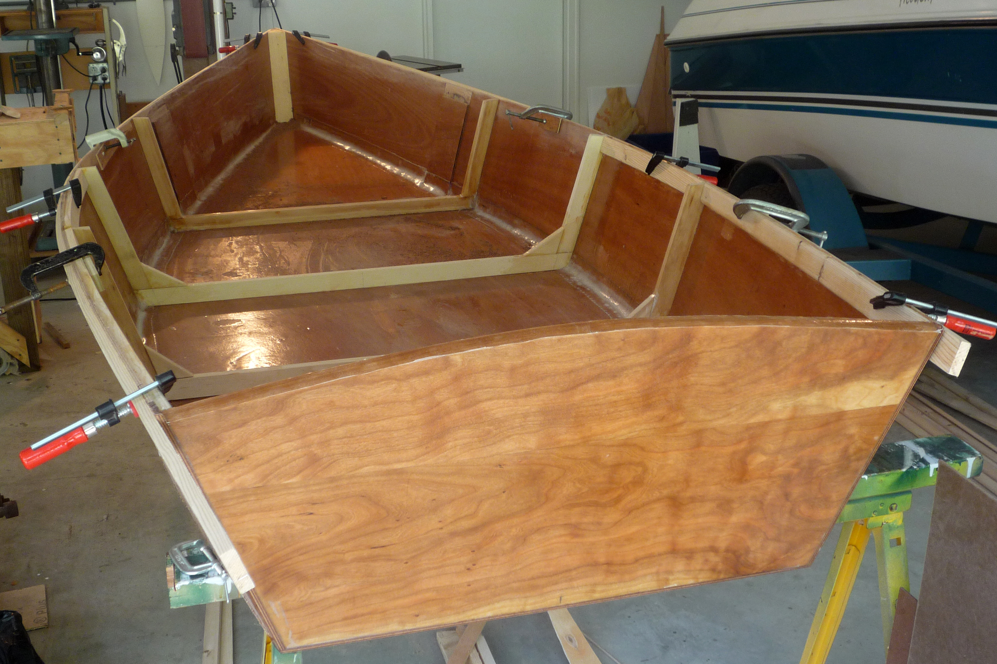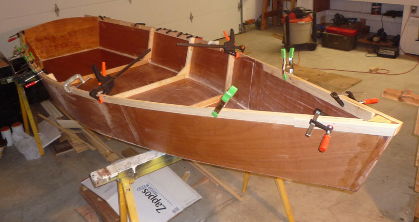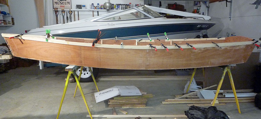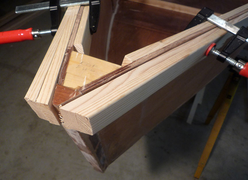 Also pieced-in another bay of inwales, and made a very rough mock-up of gunwales at stem. I think this is the way I'll complete them.