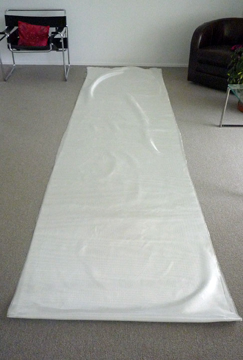 4/27/11 -- The cloth, oarlocks and sockets arrived from Raka on Tuesday. Today I unfolded the cloth and will roll it for transport to the shop. Tomorrow I'll pick up the planer from Carl.