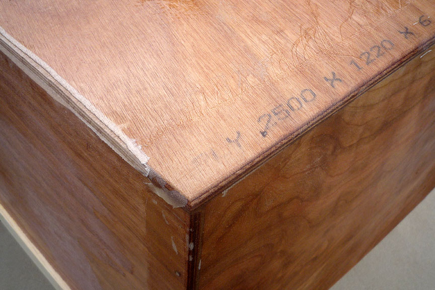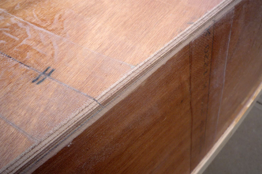 I moved the boat outside, then used the belt sander to round-over the chine exteriors (photos below); getting ready for cloth. Also sanded (to bare wood) port side where its outwale will be attached with glue. Also sanded the entire exterior with a oscillating sander.