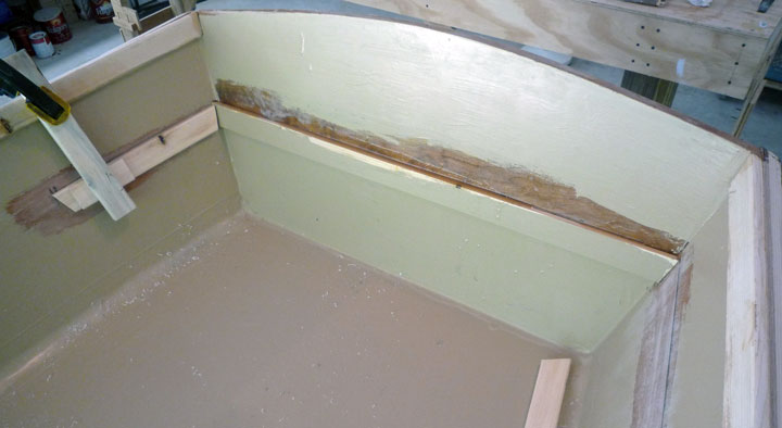 Mohs stitches removed early afternoon. All went well but didn't leave much time for the boat. Cut out the aft seat and used some thickened epoxy to hold its cross member in place.